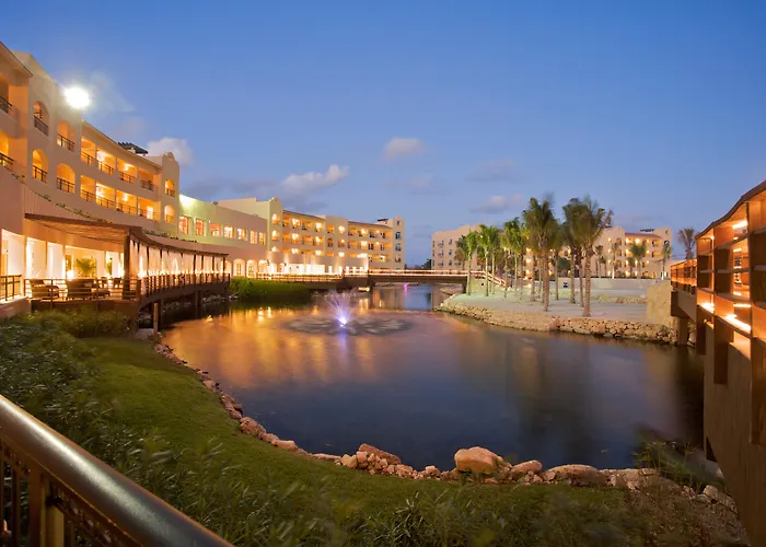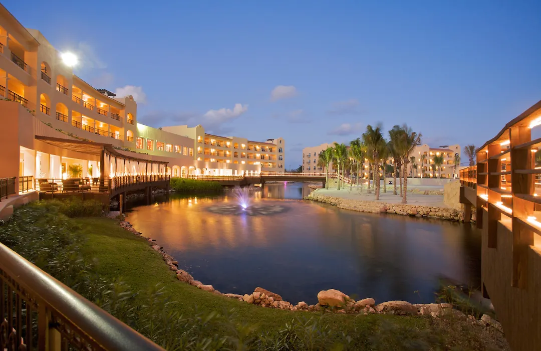Dining options include six on-site restaurants, such as Alebrije, which serves gourmet Mexican dishes like duck and lobster. Various bars, including a tequila bar and a sports bar, enhance the all-inclusive experience with a range of beverages.