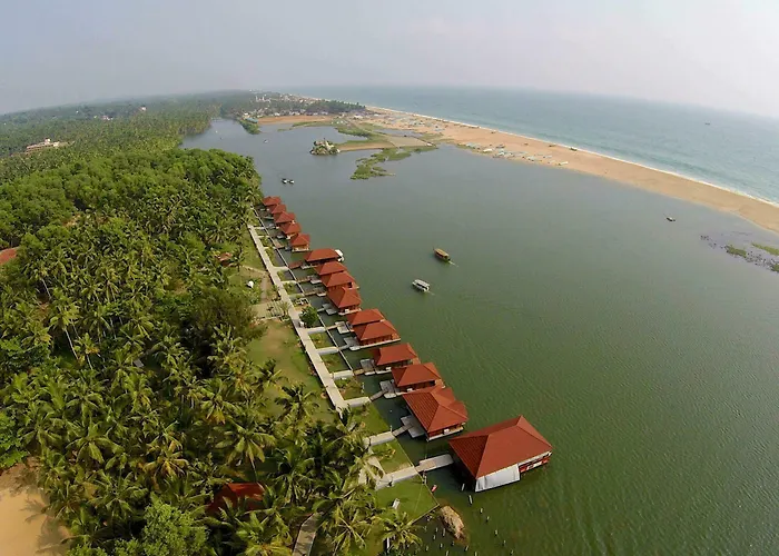 Poovar Island Resort, a 4-star hotel rated 8.5/10 on Booking.com, offers guests unique floating cottages and elegant land cottages amidst lush greenery and backwaters. The resort features facilities for Ayurvedic treatments and boasts direct beach access.