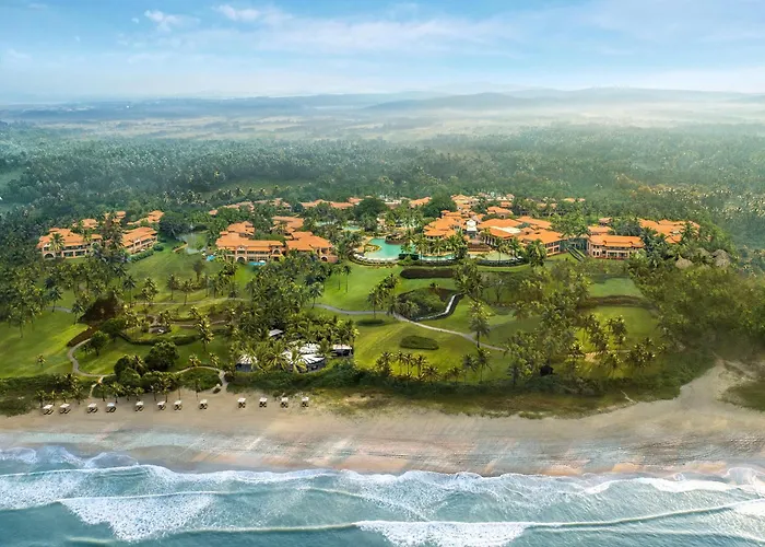 ITC Grand Goa, A Luxury Collection Resort & Spa, Goa features traditional Goan design elements and a beach-side village-styled architecture. This 5-star Utorda hotel includes a grand pool complex and an award-winning spa, ensuring a premium stay.