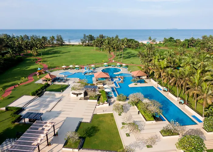 Kenilworth Resort & Spa, Goa features a grand design with Indo-Portuguese architecture, sprawling over 6 hectares of landscaped gardens, and offers a blend of luxury and comfort. This 5-star resort has an extensive range of amenities including a swim-up bar, a luxurious spa, and direct access to the beach. Known as a family-friendly accommodation, it also boasts one of Goa's largest swimming pools.