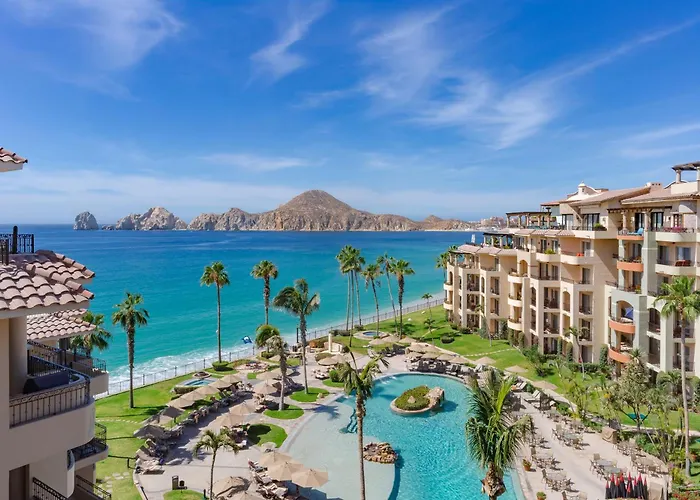 Villa La Estancia Beach Resort & Spa, a 5-star Cabo San Lucas hotel rated 9.5/10 on Booking.com, offers luxurious suites and exclusive access to dining and entertainment at sister resorts. The resort features an award-winning spa, several pools, and a variety of family-friendly activities.