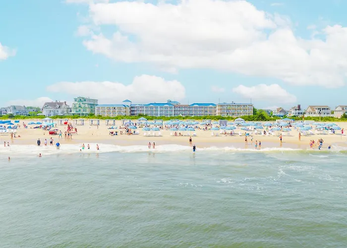 La Mer Beachfront Resort, a 4-star Cape May hotel rated 8.4/10 on Booking.com, offers direct access to a 400-foot private beach, along with a heated outdoor pool and on-site dining at The Pier House restaurant. This family-friendly destination features spacious accommodations with ocean views and convenient beach services.