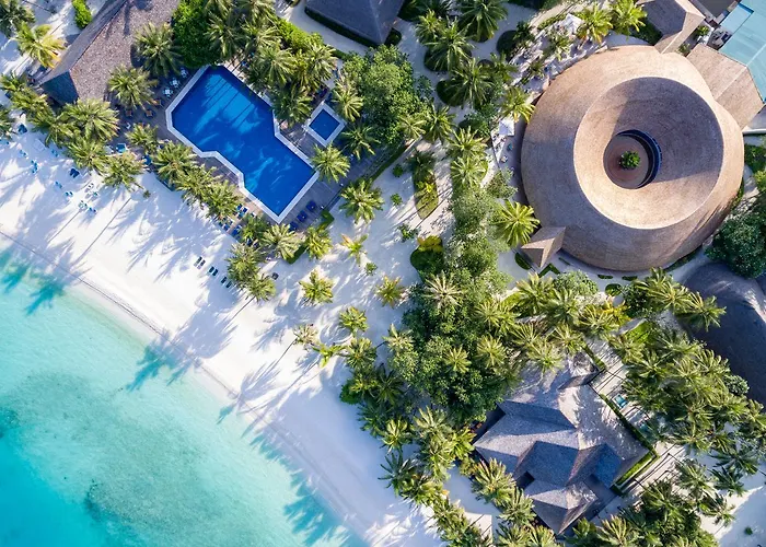 Meeru Maldives Resort Island, rated 9.4/10 on Booking.com, is a 5-star resort featuring expansive white sandy beaches, lush coconut palm trees, and vibrant coral reefs. Guests can enjoy amenities such as multiple dining options, a renowned spa, and family-friendly facilities.