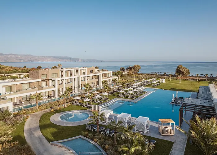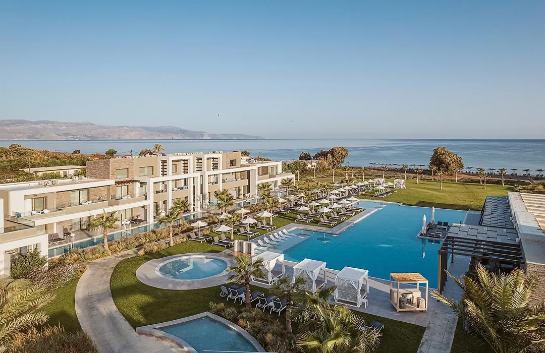 Myrion Beach Resort & Spa - Adults Only is a 5-star hotel with a 9.2/10 rating on Booking.com, offering an adult-exclusive experience that emphasizes relaxation and wellness. It features a private section of the greater Gerani beach, a grand pool complex, and multiple dining options focused on local and international cuisines.