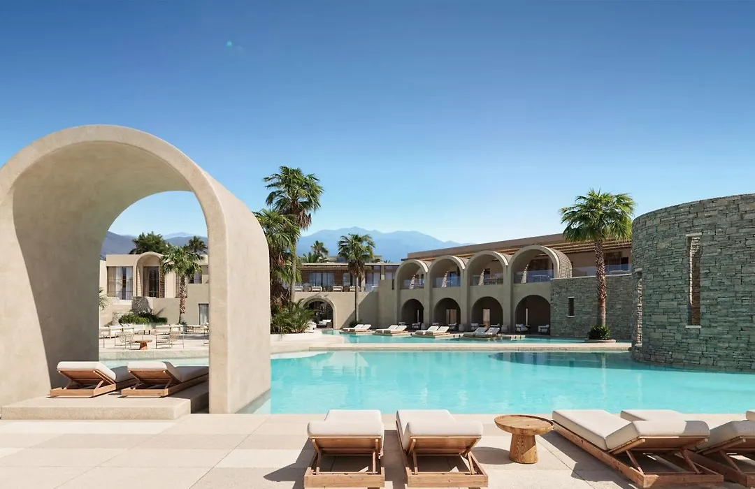Knossos Royal features spacious bungalows offering either a king-sized bed or two twin beds, complemented by outdoor terraces. Each accommodation includes a flat-screen TV, air conditioning, and a luxurious bathroom with free toiletries, ensuring a comfortable stay.