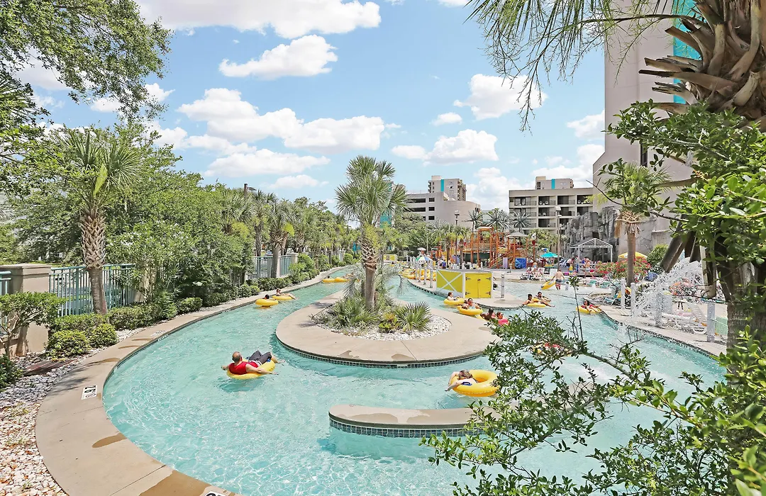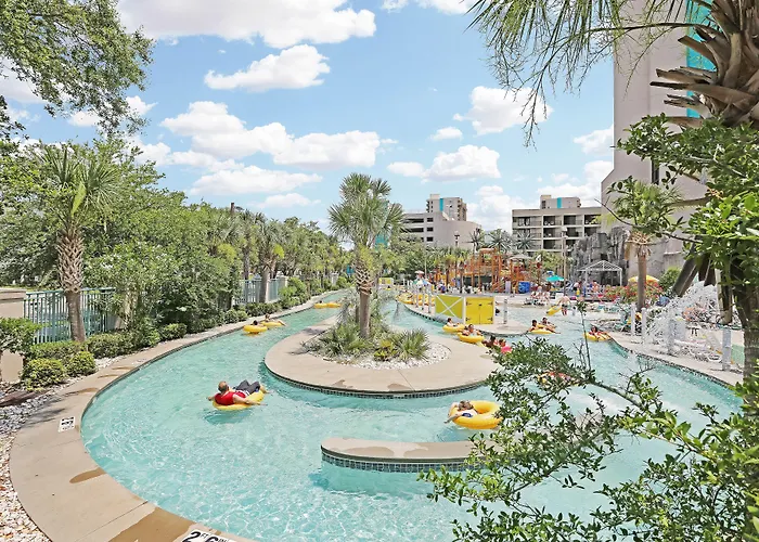 North Shore Oceanfront Resort Hotel features oceanfront accommodations with private balconies overlooking the Atlantic Ocean, ideal for family vacations or romantic retreats. This 3-star Myrtle Beach hotel offers amenities such as an on-site water park, indoor and outdoor pools, and spacious rooms equipped with Keurig coffee makers and microwaves.