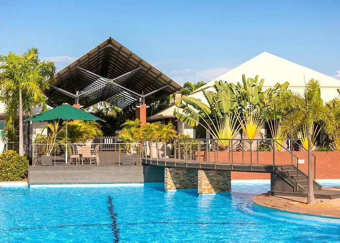 Leisure facilities at Oaks Cable Beach Resort encompass five pools, including a children's wading pool and a sun deck for relaxation. Guests can enjoy local activities such as camel rides, explore the nearby beaches, and watch the famous Broome sunsets.