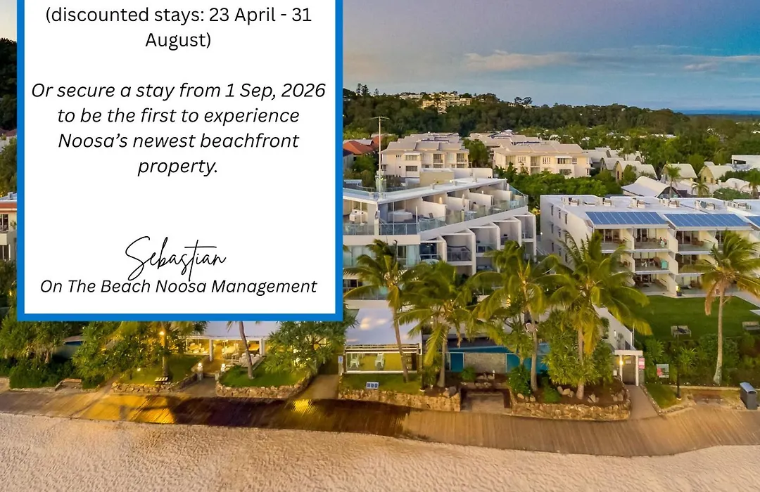 On The Beach Noosa Resort offers exclusive beachfront accommodations with stunning views of Noosa Main Beach. This five-star hotel features spacious fully self-contained apartments and penthouses, perfect for families and couples seeking luxury. Guests enjoy direct beach access and proximity to Hastings Street's vibrant cafes and restaurants.