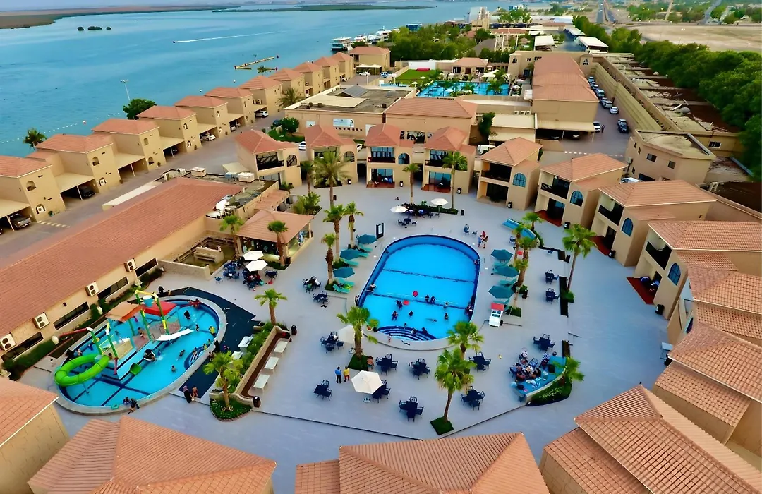 Palma Beach Resort & Spa is a 3-star Umm al-Quwain hotel featuring a seafront location with direct access to the Arabian Sea. The resort provides amenities such as three outdoor swimming pools, a private beach area, a bowling alley, and a spa. Guests can enjoy free WiFi throughout the property.