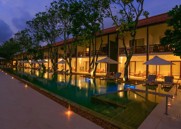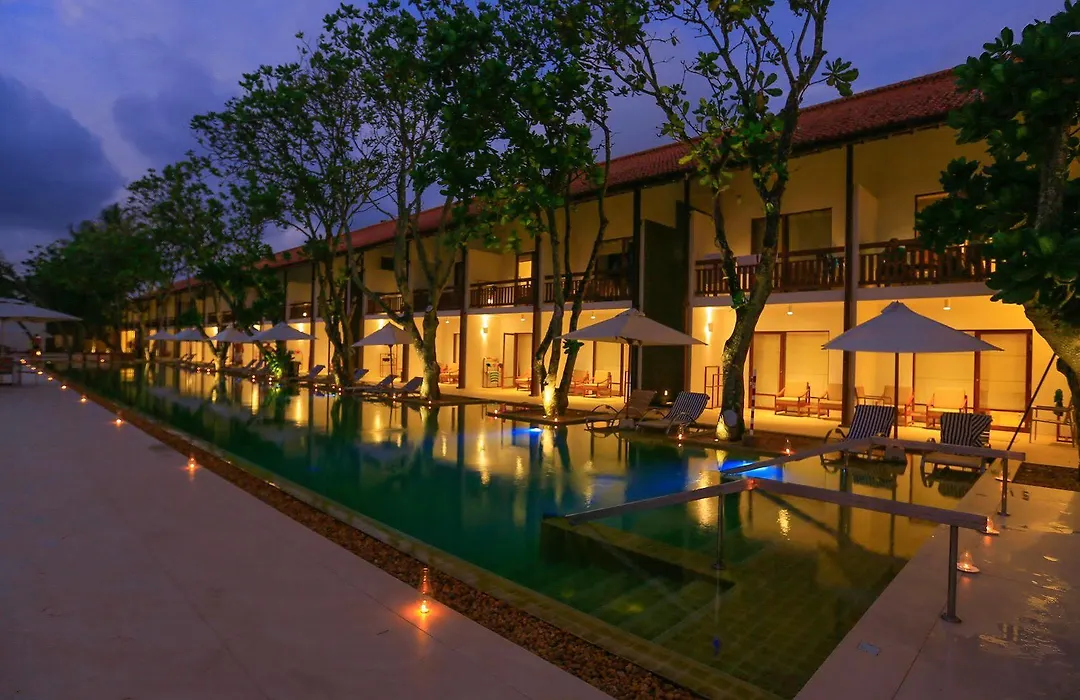 Pandanus Beach Resort & Spa is a 5-star hotel in Bentota with a sprawling five-storied structure overlooking the Indian Ocean. Amenities include an outdoor pool, fitness center, and a mini shopping arcade featuring a gem and jewelry store. Guests can enjoy on-site dining options, including buffet meals and a-la-carte dishes.