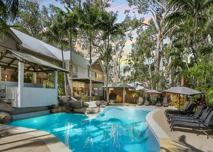 Paradise On The Beach Resort is a 4-star boutique resort located steps from Palm Cove's beautiful beachfront. It offers well-appointed studio and one-bedroom suites in a lush tropical environment, complemented by amenities such as a 150000-litre swimming pool and BBQ facilities.