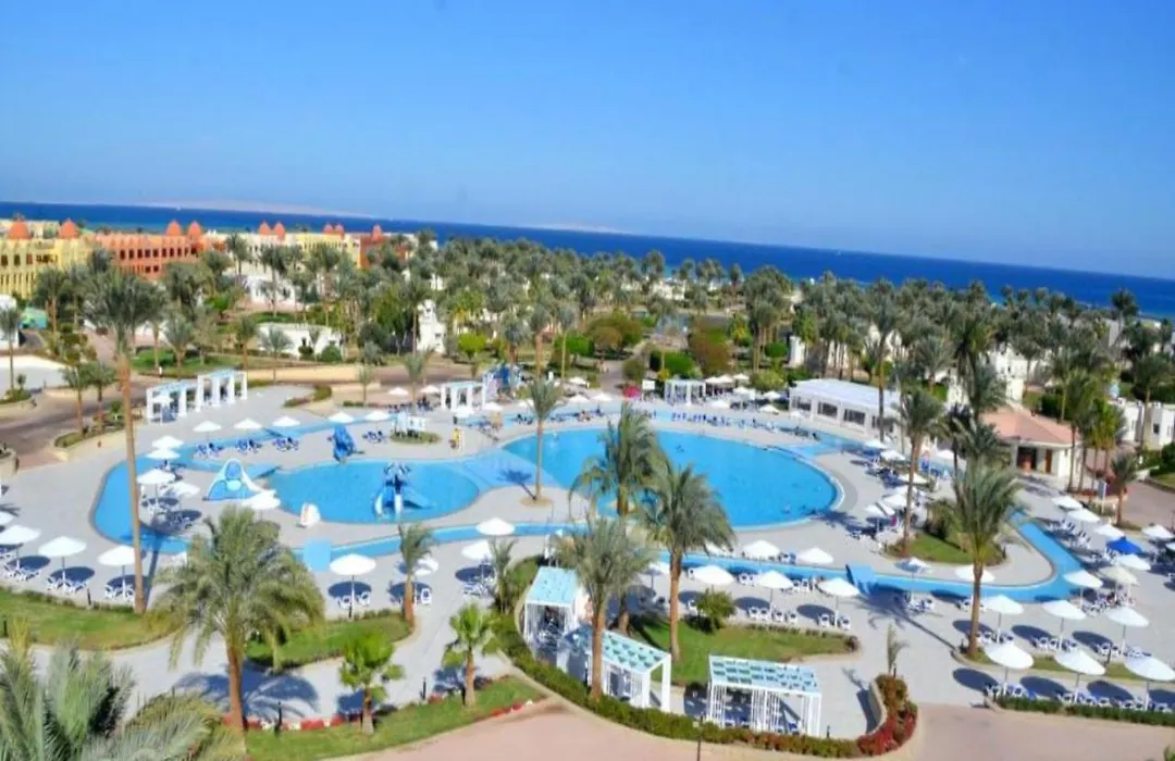 The resort is conveniently located approximately 20 minutes by car from downtown Hurghada and the airport. Transportation options include bus services to local attractions like the Jungle Aqua Park and shopping venues like Senzo Mall.