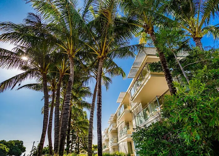 Plantation Resort At Rainbow features one, two, and three-bedroom self-contained apartments equipped with full kitchens, laundry facilities, and air conditioning. The top-level penthouse options include a rooftop terrace with BBQ facilities and scenic views of Fraser Island and Double Island Point.
