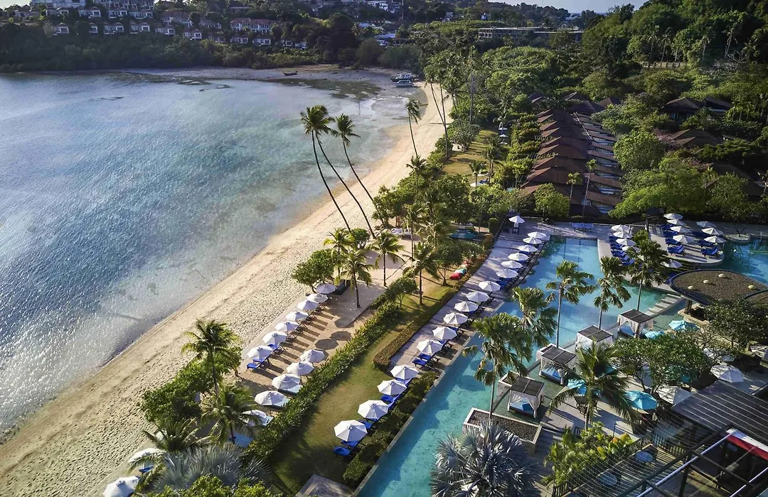 Pullman Phuket Panwa Beach Resort, a 5-star property with an 8.6/10 rating, offers beachfront luxury and diverse activities along the picturesque Makham Bay. The resort features 211 contemporary rooms, including 29 private pool villas, and boasts premium amenities such as Talay Spa and multiple dining options.