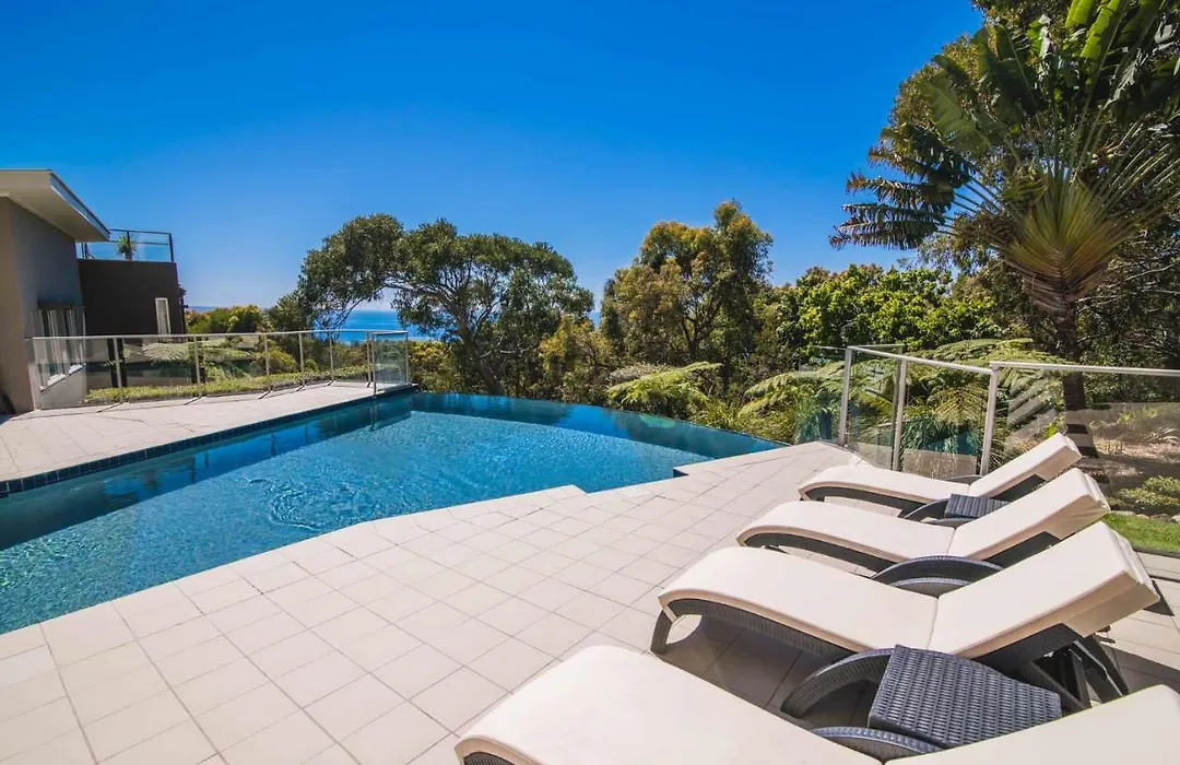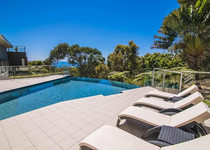 Rainbow Ocean Palms Resort offers 10 air-conditioned accommodations, including luxury penthouses with large corner spa baths and equipped kitchens. Each apartment provides stunning views of the ocean and Fraser Island, accommodating two or three bedrooms for families or groups. The apartments are designed with comfort and relaxation in mind.