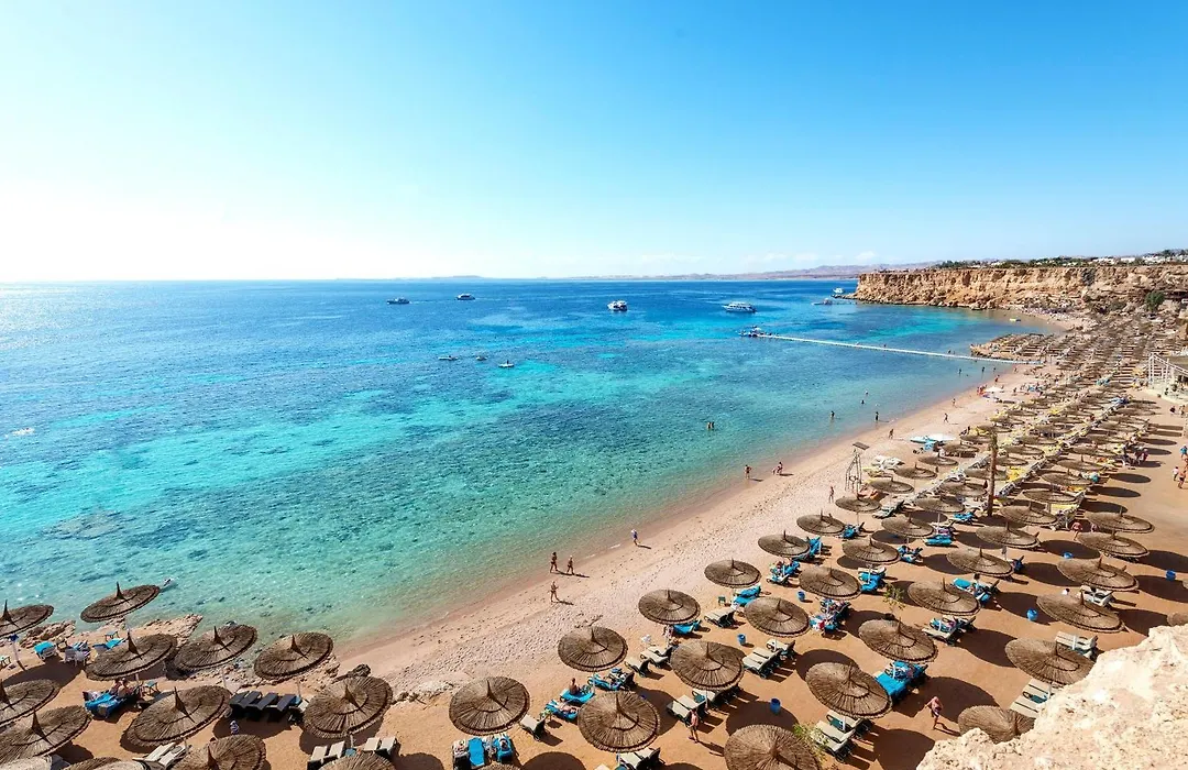 Reef Oasis Beach Aqua Park Resort offers 670 air-conditioned rooms equipped with modern furnishings, satellite TVs, and minibars. Balcony options are available, with some rooms overlooking the Red Sea or pools.