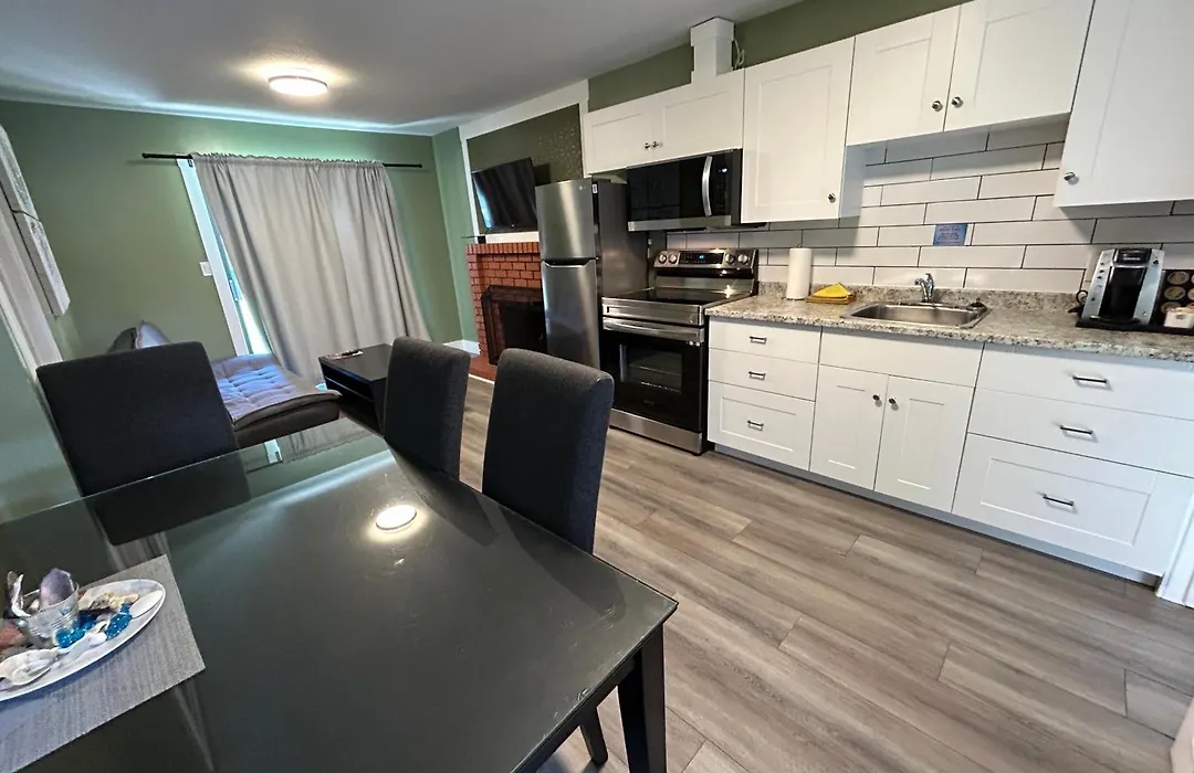 The Riverside Resort features accommodations including one and two-bedroom townhouses, stand-alone cabins, and split-level condos. These stylish but cozy units have a comfortable living area with a sofa bed, large flat-screen TV, and a fully stocked kitchen.