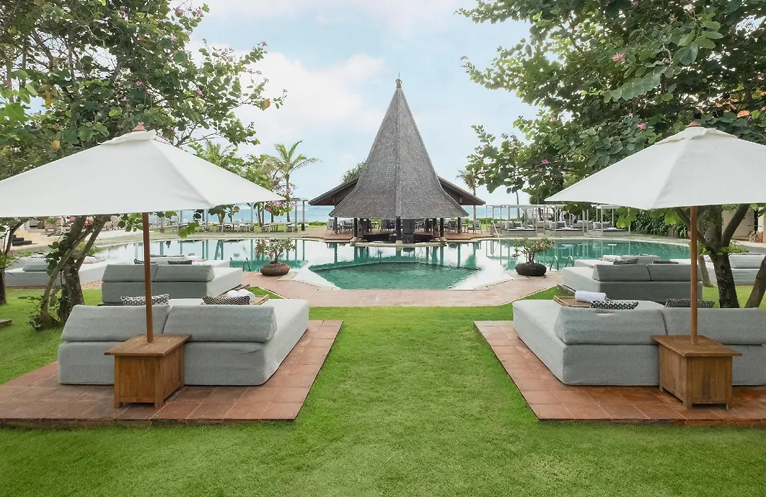 Sadara Resort offers a boutique beachfront experience with 81 uniquely designed rooms, a calming spa, and exquisite dining options. This 5-star Nusa Dua (Bali) hotel features a scenic pool bar and direct beach access, perfect for a tranquil getaway.