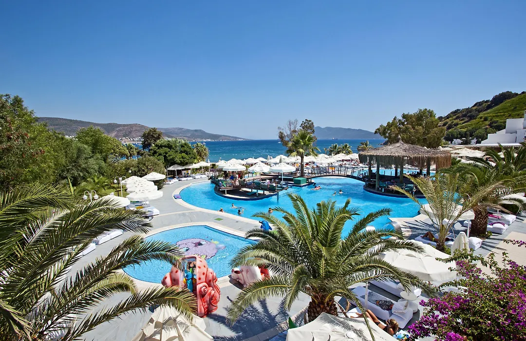 Salmakis Resort & Spa offers a beachfront experience with a large pool complex and extensive spa facilities. This 5-star Bodrum hotel features five bars, including a beach bar and a vitamin bar, and direct access to Bardakci Bay.