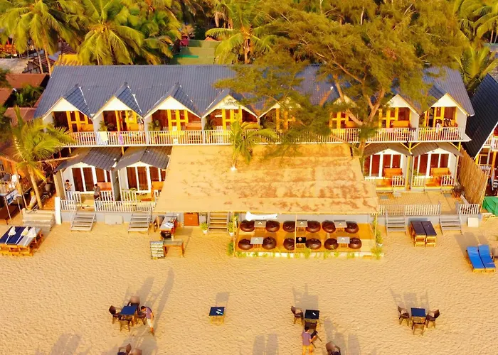 Agonda Serenity Resort, a 3-star Agonda hotel rated 8.6/10 on Booking.com, features 25 accommodations including 7 Sea View Huts and 14 Garden View Huts. The resort offers a restaurant serving Indian and Continental dishes, a bar, and direct beach access in a tranquil garden-like environment.