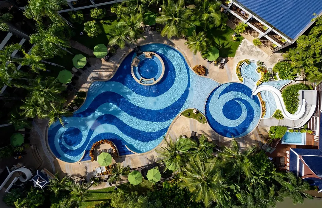 Siam Bayshore Resort Pattaya offers a beachfront experience with 5-star luxury and a Booking.com rating of 8.0/10. This family-friendly Pattaya hotel features a private beach area and lush gardens, providing ample opportunities for relaxation.