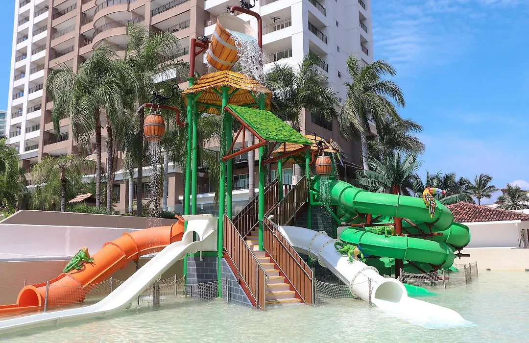 Oceanfront Sunscape Puerto Vallarta Resort, a 4-star family-friendly property, features a long stretch of golden sand beach and a new water park for kids. The resort offers six on-site dining options, four bars, and engaging daily activities for all ages.