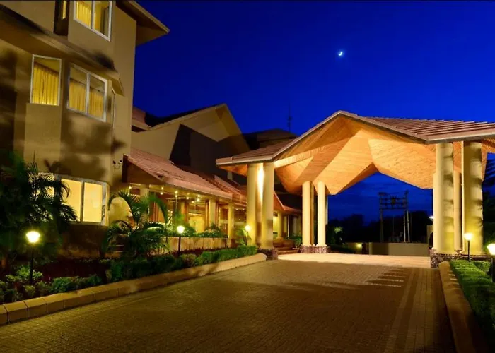 Dining options at The Chariot Resort & Spa include three restaurants: Spice Route, Mystique, and Seasons, serving Indian cuisine and more. Guests can also enjoy drinks at the bar/lounge.