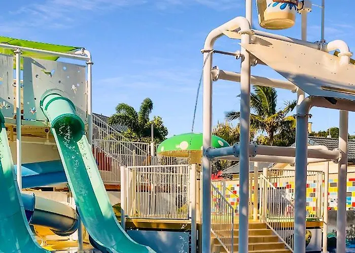 Turtle Beach Resort features a family-friendly environment with 5-star accommodations and a water park. Amenities include an on-site restaurant, kids club 'Club Turtle', and various swimming areas. Rated 7.9/10 on Booking.com, this Mermaid Beach hotel offers self-contained apartments with balconies overlooking lush gardens.