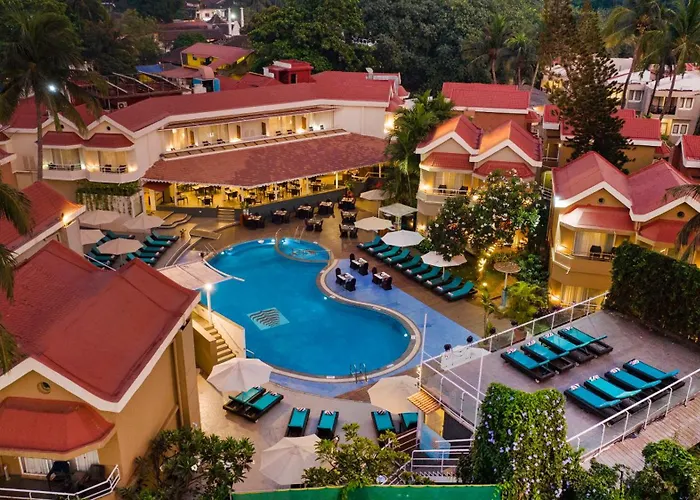 Whispering Palms Beach Resort offers a serene retreat with access to Candolim Beach, just 200 meters away. This 4-star hotel features an outdoor pool and various dining options including a buffet restaurant, Indian specialty eatery, and a lounge. The resort is distinguished by its lush gardens and welcoming atmosphere.