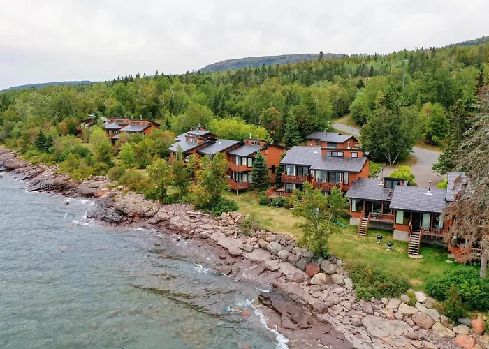 Lutsen Sea Villas features modern accommodations equipped with amenities suitable for families and outdoor enthusiasts. This 4-star Lutsen hotel offers a wellness area with an indoor pool and a private beach area for relaxation.