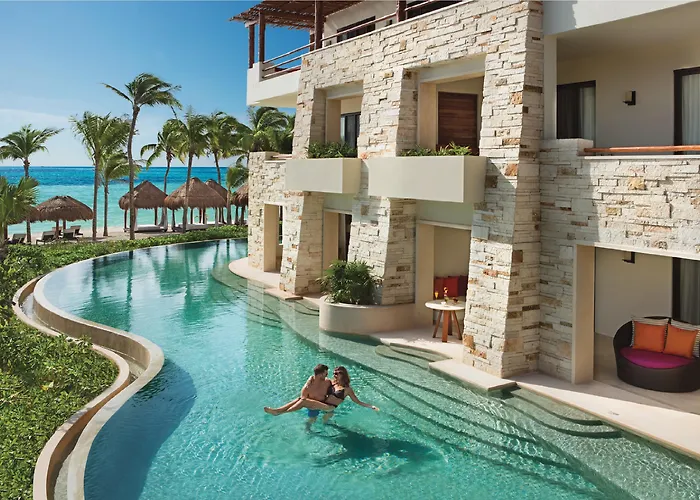 Secrets Akumal Riviera Maya - Adults Only is a 5-star, all-inclusive resort recognized with a 9.5/10 rating on Booking.com. This oasis features stunning white-sand beaches and a variety of dining options among tranquil surroundings, ideal for couples seeking a romantic getaway.