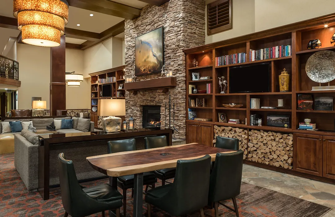 Dining options include Timbers Restaurant and Lounge, offering crafted cocktails, small plates, and seasonal après-ski appetizers. Starbucks(R) provides quick breakfasts and afternoon pick-me-ups.