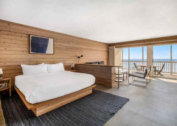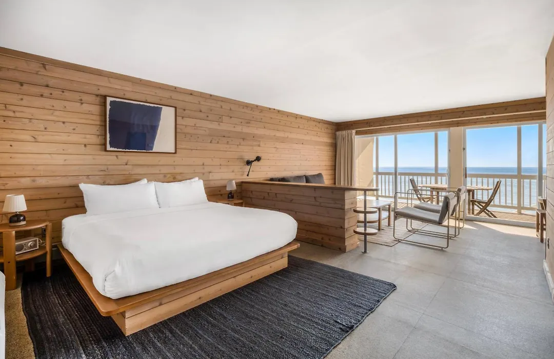 Sound View Greenport features 55 uniquely designed guest rooms, including luxury suites with private hot tubs and oceanfront decks. Rooms boast modern coastal decor and amenities such as Nespresso machines, high-speed Wi-Fi, and direct beach access. The hotel offers two ADA-compliant rooms equipped with accessible features.