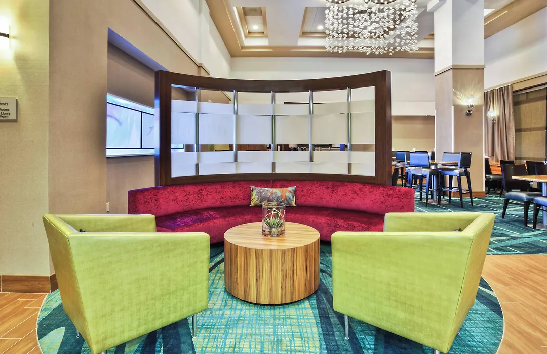 Every suite at Springhill Suites includes a sleeping area and a living area with a sofa bed, as well as a small refrigerator and a microwave. Amenities include a flat-screen TV with cable channels and a private bathroom with a bath or shower and complimentary toiletries.