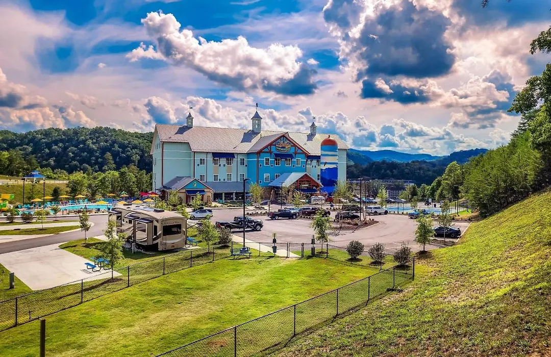 The Lodge At Camp Margaritaville is a 3-star Pigeon Forge hotel featuring an outdoor swimming pool, a hot tub, and access to various recreational amenities. This family-friendly lodge offers free WiFi and convenience for both families and pet owners. Additional facilities include a restaurant and a fitness center.