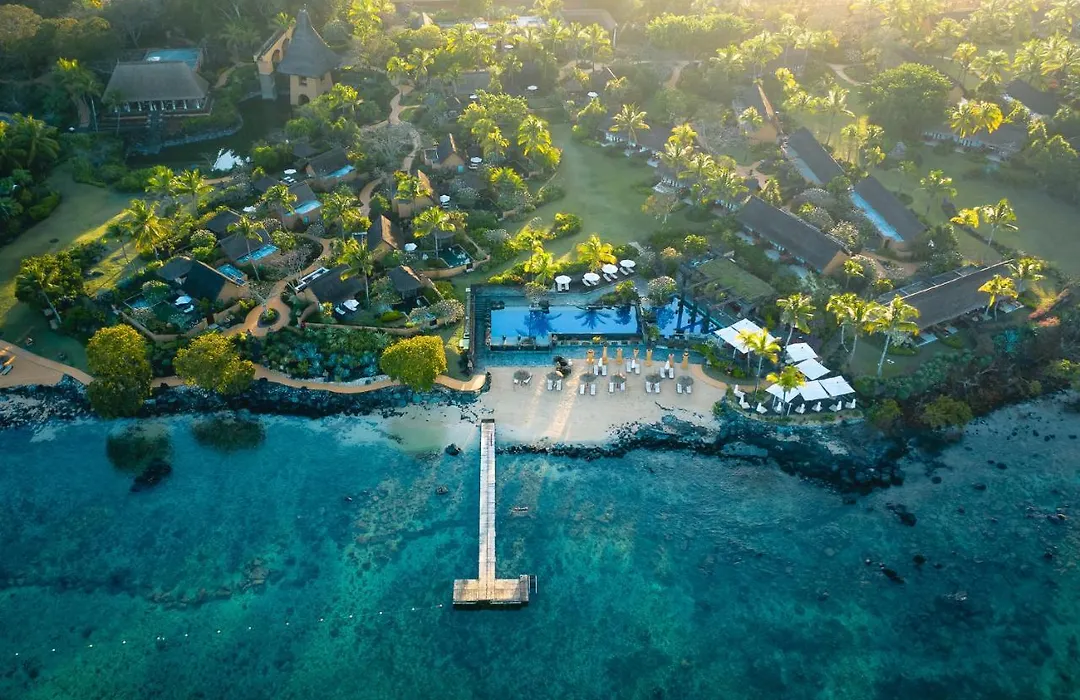 The Oberoi Beach Resort, Mauritius is a 5-star Balaclava hotel set on the pristine shores of Turtle Bay, featuring 600 meters of beachfront and over 8 hectares of tropical gardens. The resort offers luxury accommodations with traditional thatched roofs, along with distinctive dining options and exceptional wellness facilities.