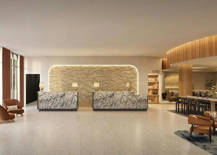 Dining options include The Oceanaire Seafood Room, offering fresh seafood flown in daily, and Second Floor Regionally Inspired Kitchen, serving breakfast, lunch, and dinner. Both restaurants emphasize a casual atmosphere with imaginative cuisine.