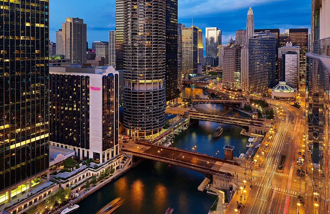 With its iconic riverfront location, The Westin Chicago River North offers a perfect base for exploring the Windy City. This 4-star Chicago hotel provides 30000 square feet of elegant venue space and features a wellness-centered experience with healthy dining options and a comprehensive fitness studio.