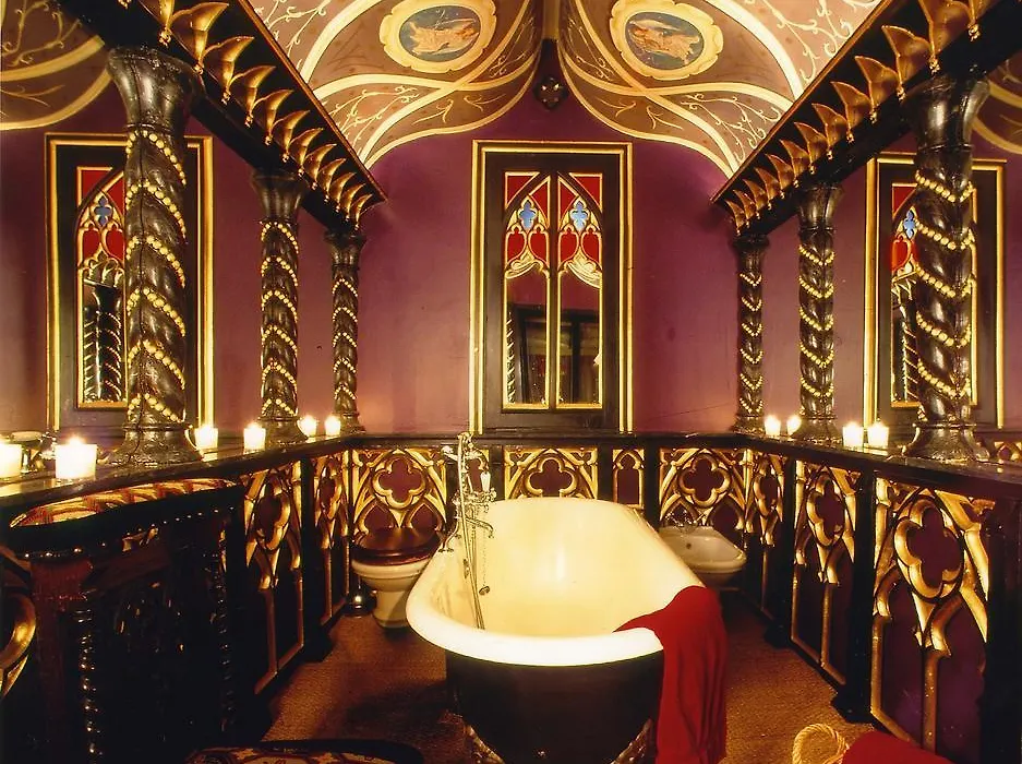 Each of the nine unique suites at The Witchery By The Castle features distinctive decor, such as luxurious four-poster beds and elegant oak-panelled bathrooms. Some suites offer views of the historic Royal Mile and Edinburgh Castle, enhancing their romantic appeal. Guests can also find a lavishly draped four-poster bed in the lacquer-red bathroom suite.