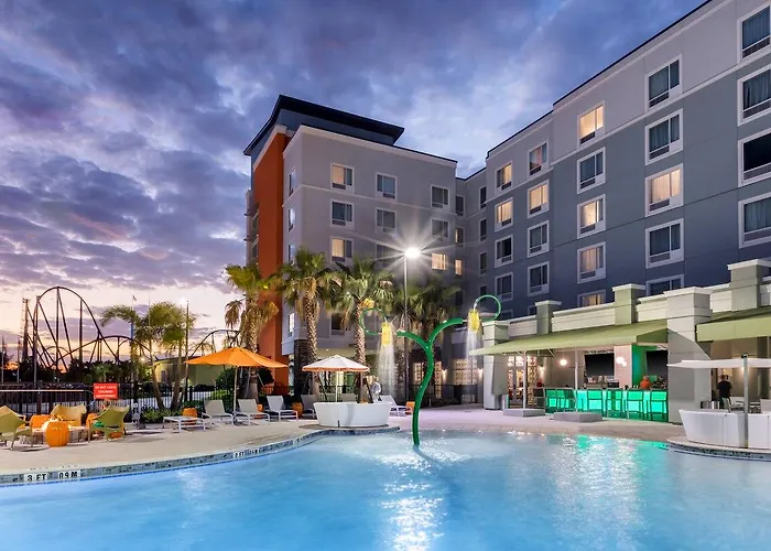 TownePlace Suites by Marriott Orlando at SeaWorld boasts a 3-star rating and features family-friendly suites with full kitchens. Additional amenities include free WiFi, an outdoor swimming pool, and on-site dining options.