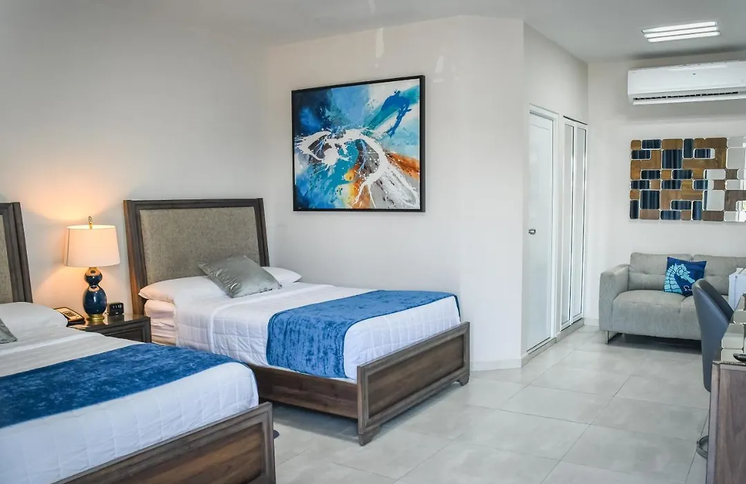 Rooms at Villa Cofresi feature cable TV, air conditioning, and a refrigerator. Ocean view options include spacious deluxe rooms with private balconies. Standard rooms and apartments accommodate families and groups with kitchenettes available.