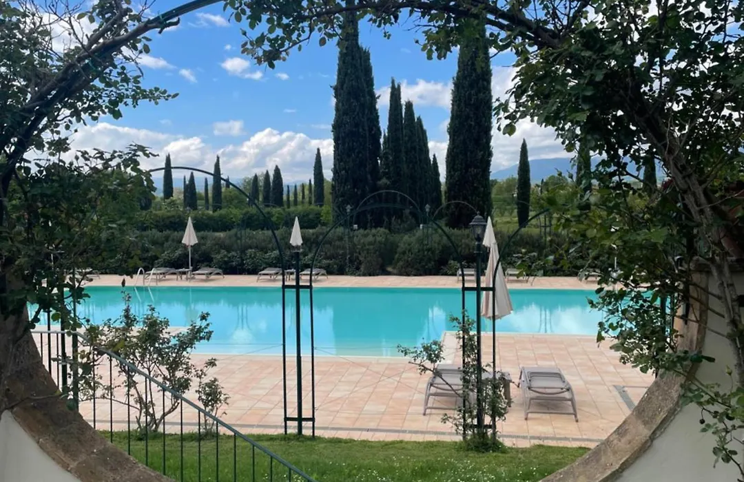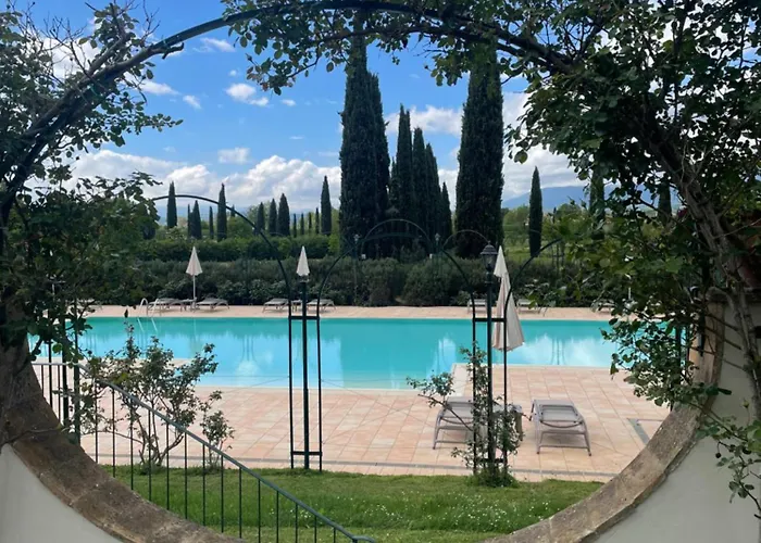 Villa Santa Barbara is a 4-star Montefalco hotel featuring a large deck-level overflow swimming pool and a 430556.6 ft² park filled with 980 Meilland French rose bushes. The historic property, transformed into a Relais de Charme, offers a relaxing atmosphere surrounded by lush gardens and hills.