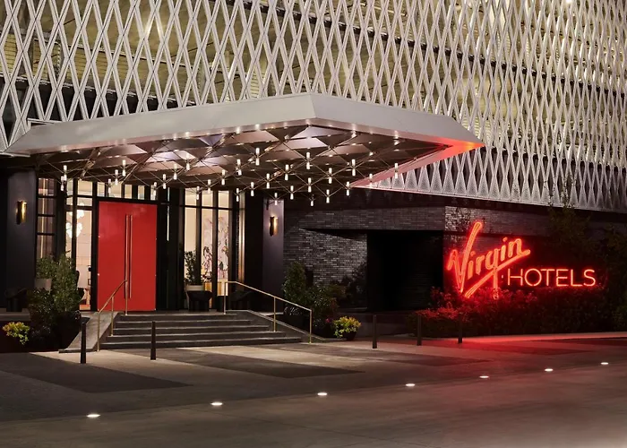 Virgin Hotels Dallas, a 4-star hotel with an 8.7/10 rating on Booking.com, features spacious accommodations and vibrant dining options in the Design District. This pet-friendly hotel offers a rooftop pool, fitness center, and an eclectic menu at Commons Club, making it suitable for leisure and business travelers.
