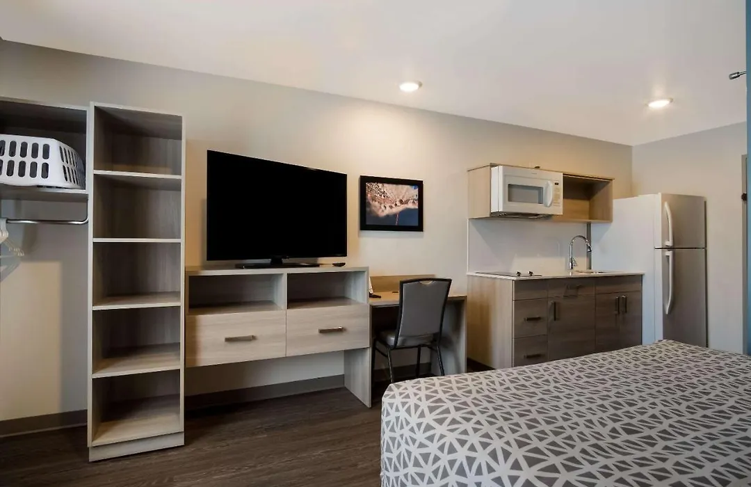 The suites at Woodspring Suites Grand Rapids Kentwood include essential amenities such as a stovetop, a refrigerator, and a microwave, allowing guests to prepare their own meals. Each suite features a flat-screen TV with streaming services and a seating area for relaxation.