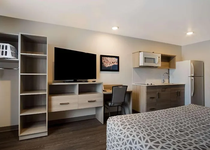 Woodspring Suites Grand Rapids Kentwood offers convenient accommodations with a 7.8/10 Booking.com rating. This 3-star Cascade hotel features fully equipped kitchens in each suite for meal preparation and air-conditioned rooms with modern amenities.