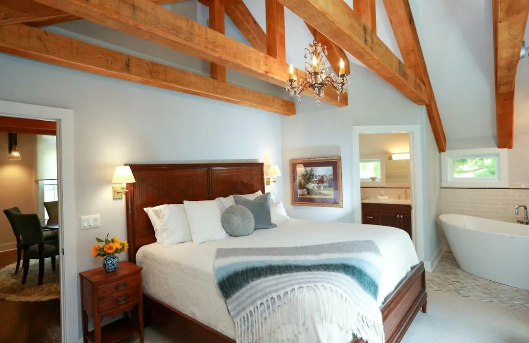 The inn provides a gourmet country breakfast made with local ingredients, served in the dining room or delivered to guests' doors. Nearby dining options include Bistro Rouget and Centre Bridge Inn, both within 0.6 miles.