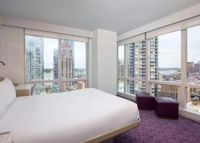 Yotel New York Times Square is a 4-star hotel featuring tech-forward accommodations and stylish communal spaces in the heart of Manhattan. Key amenities include a wellness area with an ultra-modern gym, a rooftop terrace, and a Mediterranean fusion restaurant. With a rating of 7.6/10 on Booking.com, it serves as a significant base for exploring the city's renowned attractions.